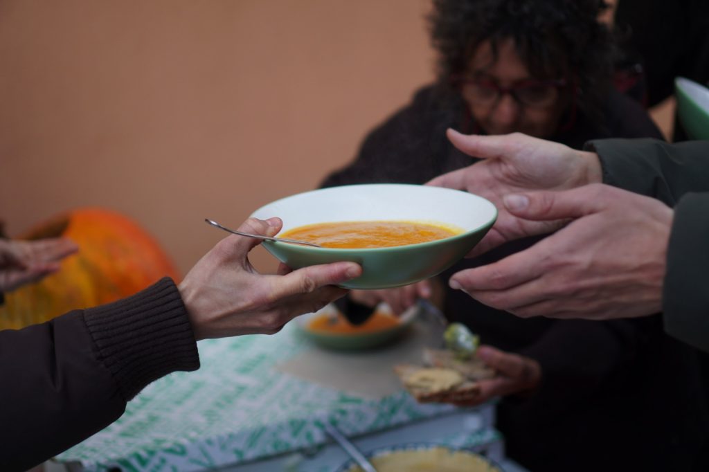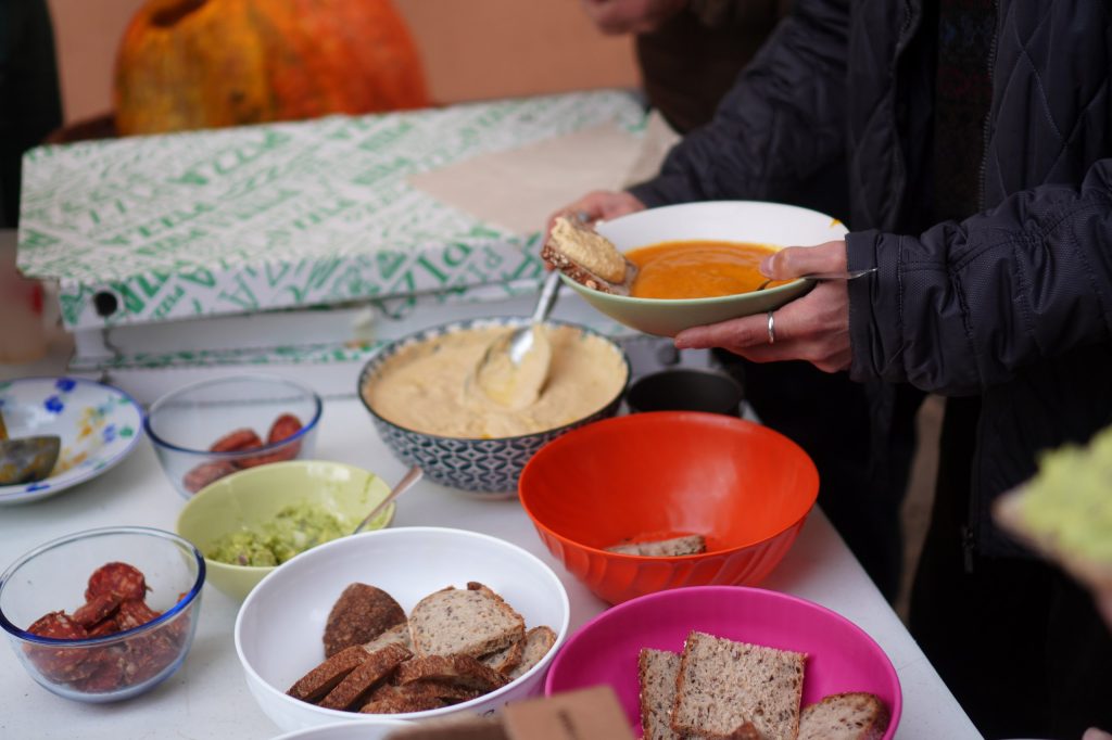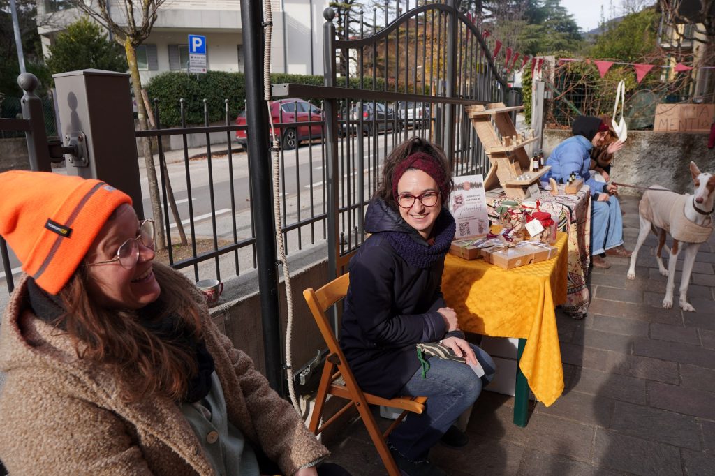 Altri ingredienti della giornata: gli oggetti scambiati e quelli raccolti dalla nostra Biblioteca degli oggetti, al suo debutto in società (ne abbiamo già parlato qui e qui); il tocco di classe dei nuovi divanetti in vimini comparsi in sala di comunità (che è sempre più accogliente); le parole volate durante le sfide di Edera-Taboo, gioco tra l’altro sempre disponibile in emporio; l’intesa di tre musicisti che hanno suonato per noi come un trio rodato (e non si erano mai visti prima)!